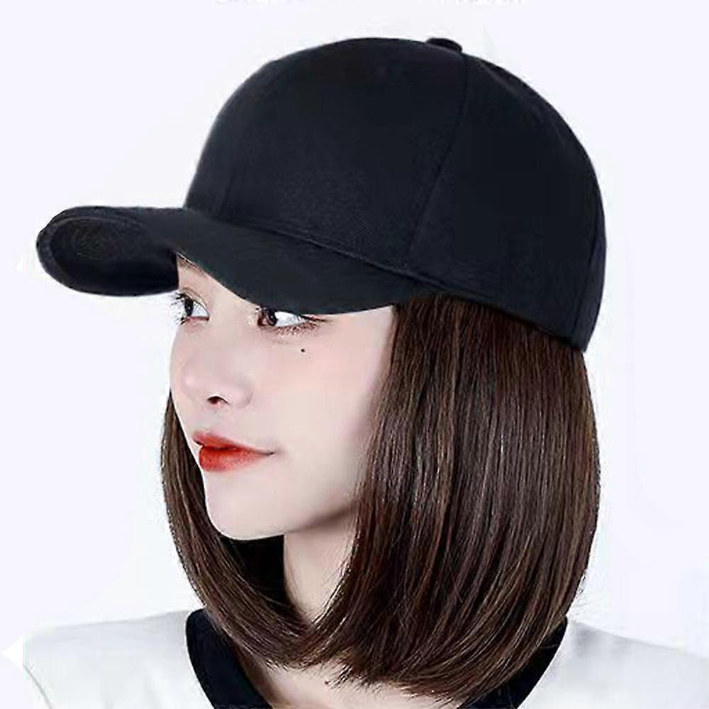 Baseball Cap with Hair Extensions Straight Short Bob Hairstyle Adjustable Removable Wig Hatfor Woman Girl