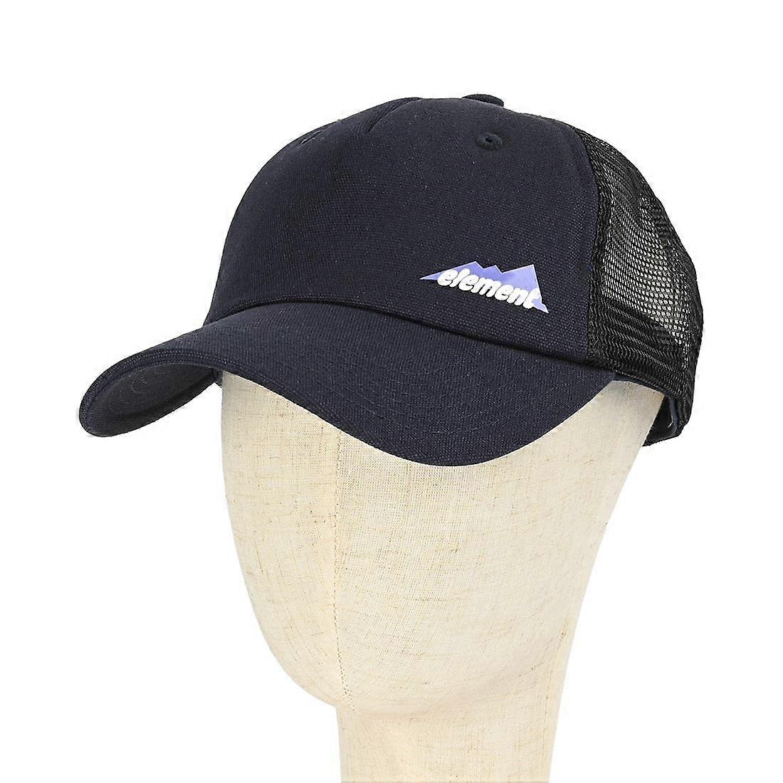* The Element Mount mesh cap is a classic mesh back trucker style hat, featuring a sewn-on Element-branded embroidered patch on the front panel * Navy construction at the front and rear with subtle tonal blue and white details * 5-panel crown construction * Embroidered eyelets around the crown * Adjustable snap closure to the rear with a woven flag label detail * 6-stitch, curved visor * Woven label and branded taping details * Materials: 55% Cotton / 45% Polyester * Fit: regular, one size fits all