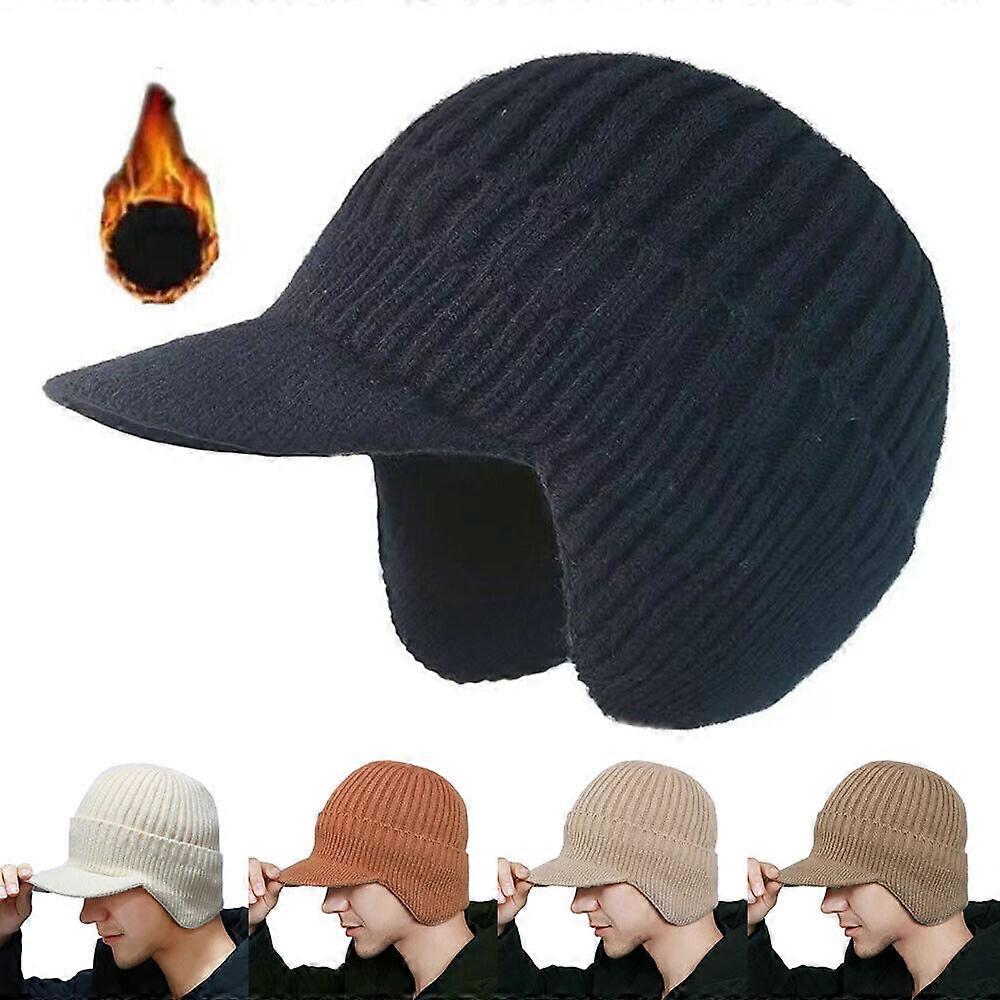 Warm Ear Protection Cycling Cap with Velvet Beanie Hat with Brim Men's Knit Cap