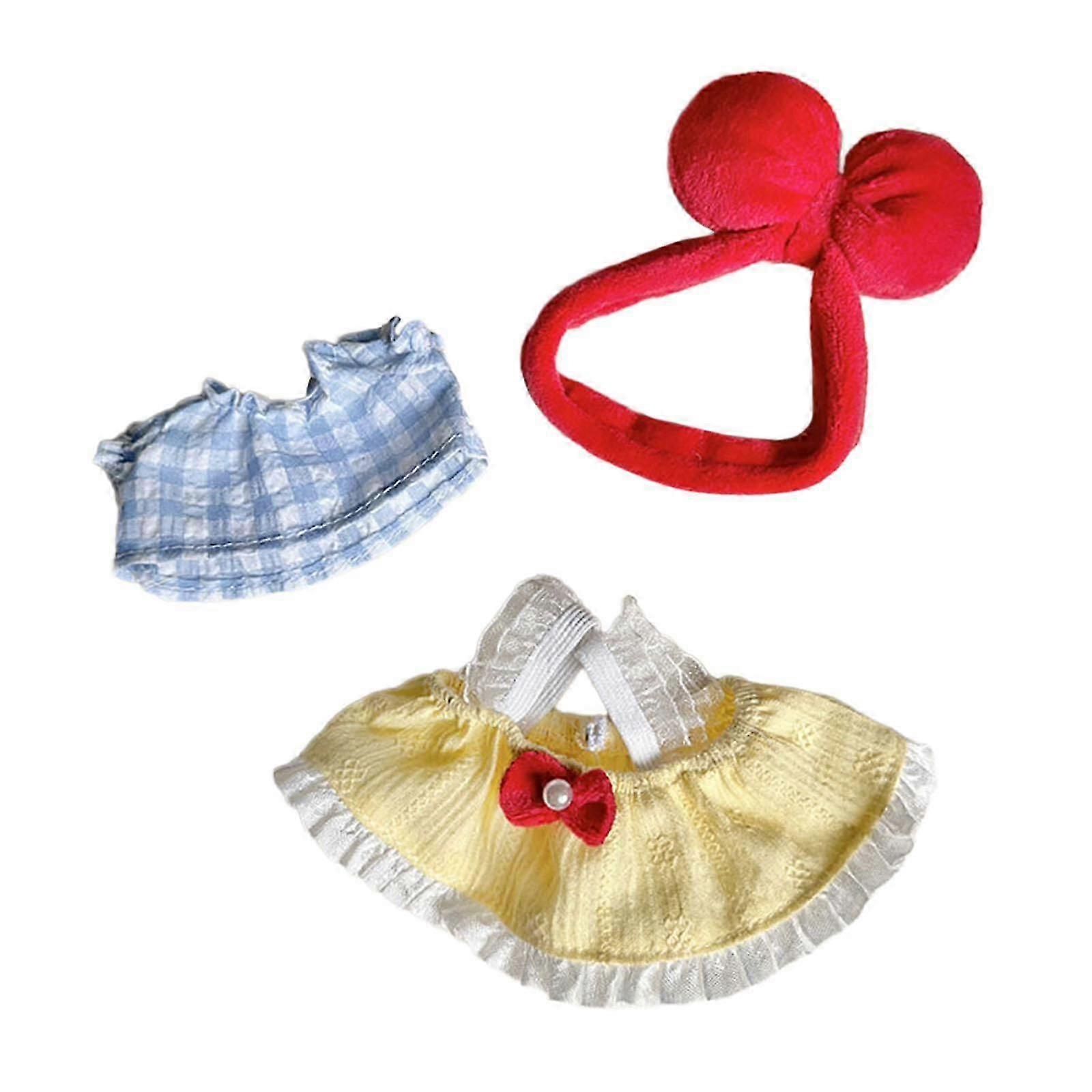 Educational: The Plush Doll Overall Skirts can not only bring much fun for them, but also cultivate their hands on ability, imagination, flexibility and coordinationFit For: Cute doll Princess dress suit is suitable for 17cm/6.69inch, you candress up according to preferences and matching needMaterial:Stuffed Doll Brace Skirt is made of cloth material, very soft and easy to put on offDress up your doll:17cm Doll Overall Skirts is suitable for kids who like to dress up with dolls or as a gift for doll collectors and enthusiastsOccasion:Plush Figure Outfits Costumes Decorate dolls, take scene photos, make handmade gifts Specification: Material: clothSuitable for 17cm/6.69inch Package Includes: 1 Doll dress1 dollBottoming shirt1 doll Hair accessory