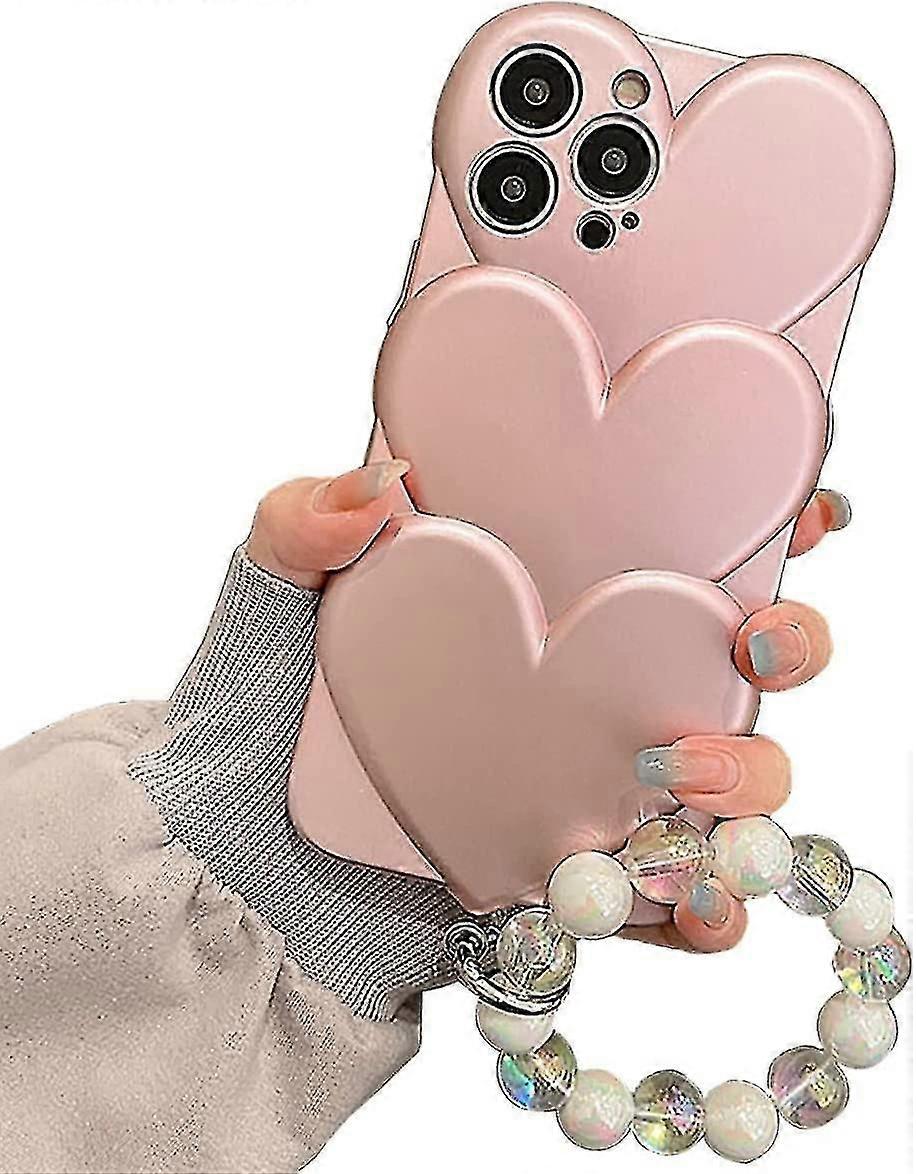 Cute 3d Cartoon Heart Case Compatible Iphone 13 Pro Max/13 Pro With Lovely Bracelet Chain For Women Girls