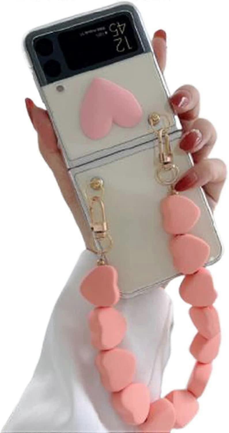 Cute Love Heart Design Clear Tpu Case Compatible With Samsung Z Flip 3 With Bracelet Wristband