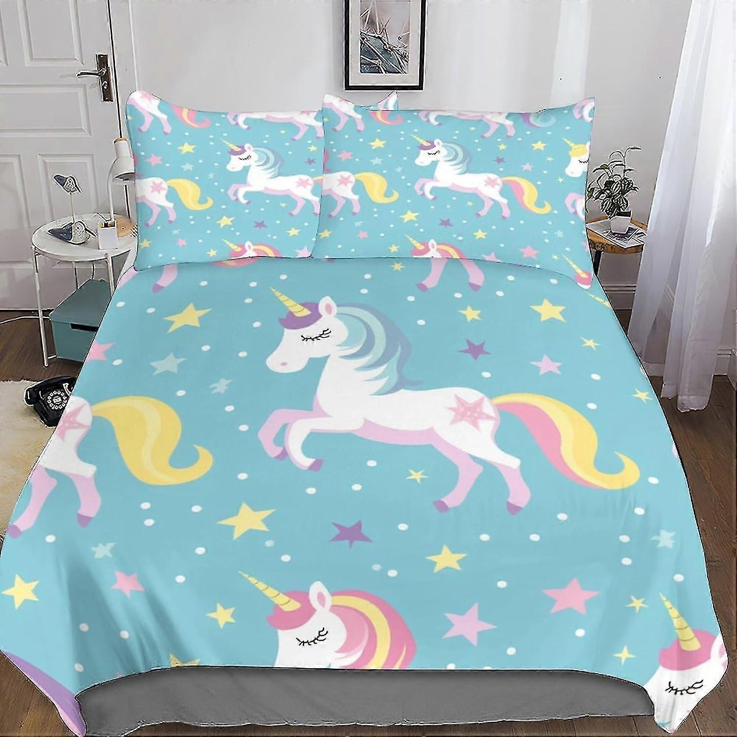 Cute Unicorn Theme 3D Printed Quilt Cover 3PCs Cartoon Duvet Cover Bedding Set with Microfiber and Hidden Zipper Closure with Pillowcases