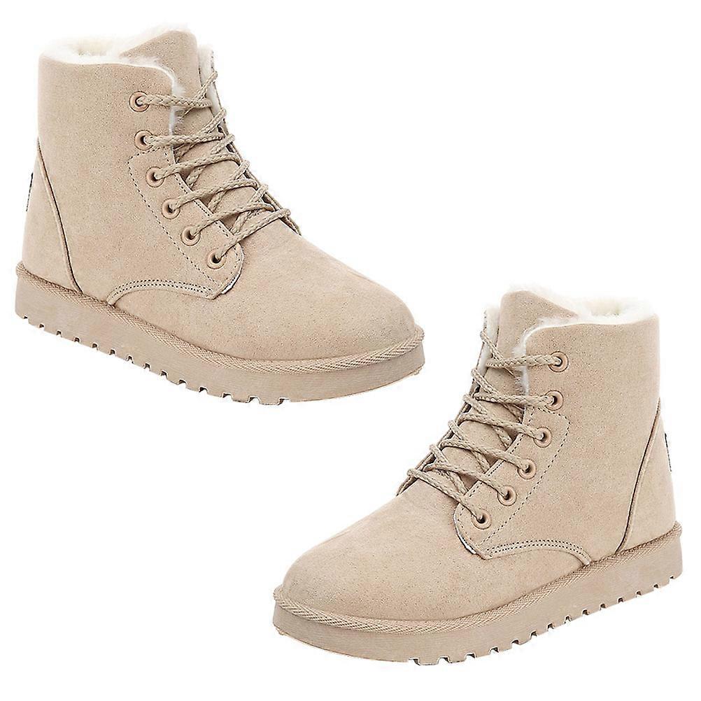 Female Snow Boots 1Pair Beige Lace-Up Warm Cotton Boots with Slimming Design for Winter Wearing