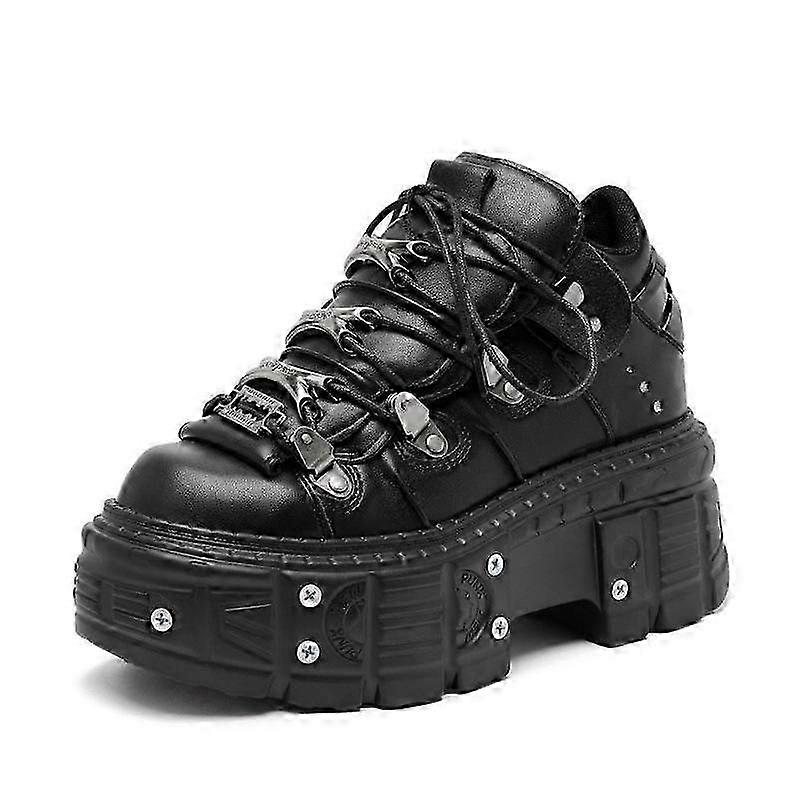 Lace-up Boots for Women Punk Style Platform with Metal Decor