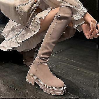 Botas femininas acima do joelho, solas grossas, botas altas de emagrecimento, gordura elástica MM, estilo temperamento