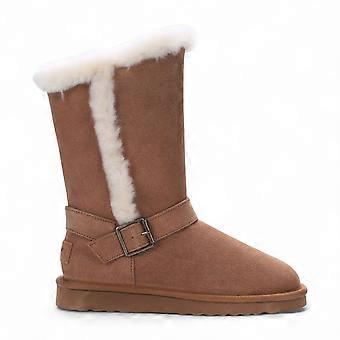 Women's Genuine Sheepskin Suede Calf Boots Zip Warm Winter Non-Slip Cosy