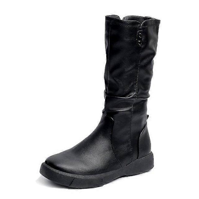 Women Warm Plush Fur PU Leather Mid Calf Boots Mother Snow Boots Female Ladies Flats Shoes Zip Platform Boots