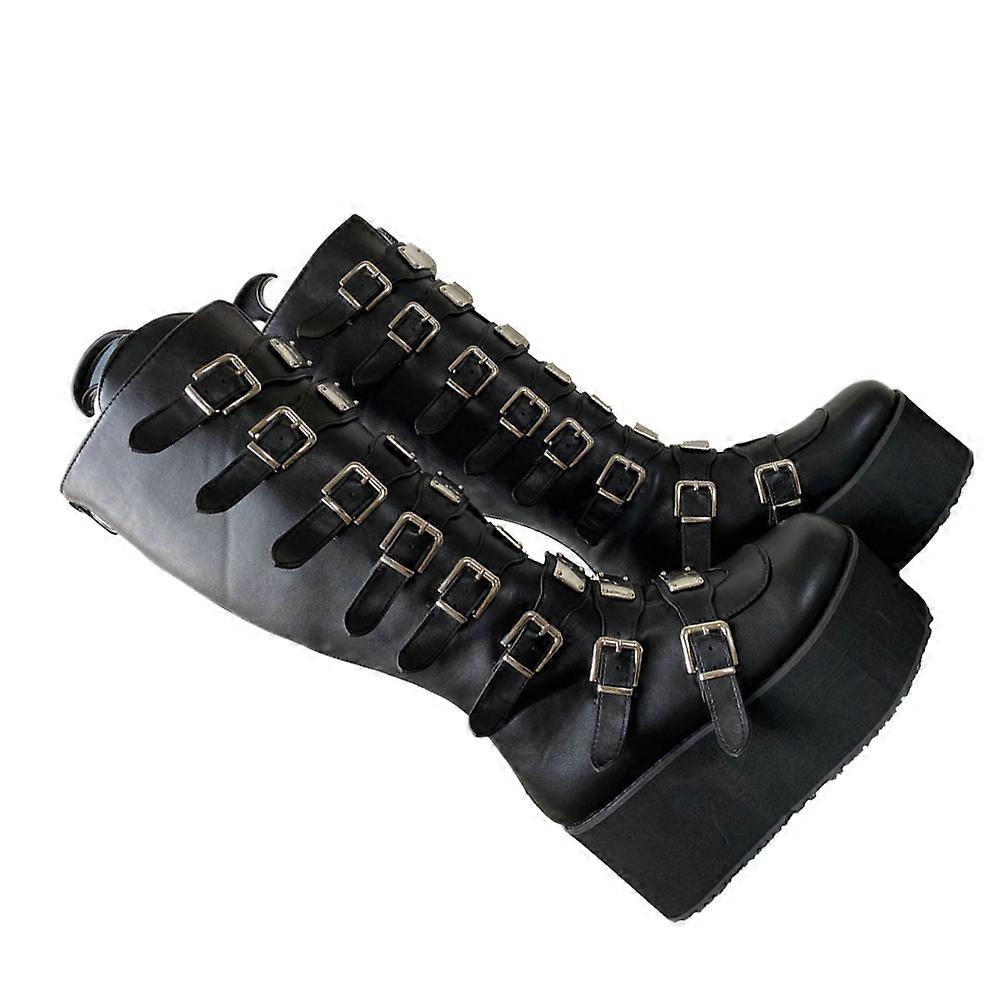 Fashionable Black High Leg Boots For Women With Buckle Stylish Design For Autumn Occasion 1 Pair