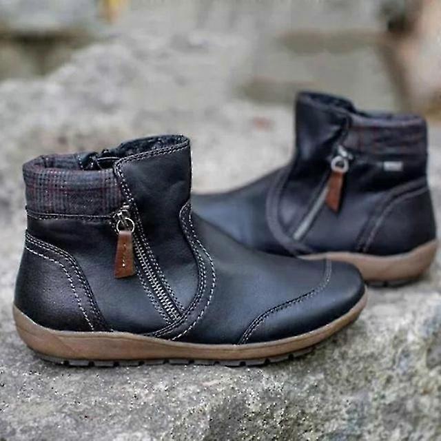 Plus Size Short Ankle Boots 43 Women's 2022 Autumn And Winter Double Zipper Flat Snow Boots Wedges Low Top Shoes Botas Femininas