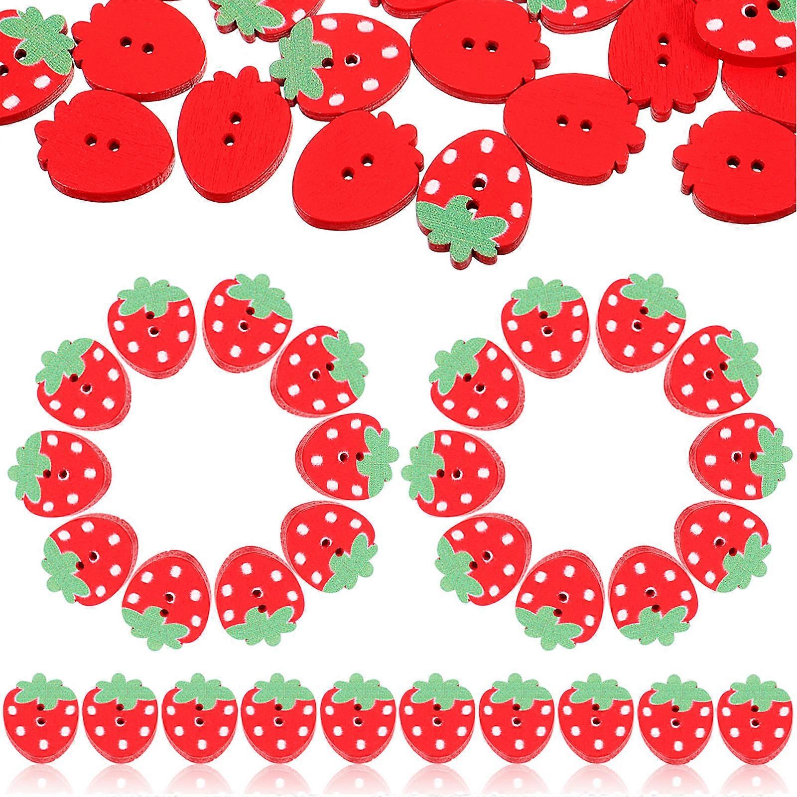 Wooden Buttons 250 Pcs Strawberry Shape Double Holes Design For DIY Crafts Projects Bright Red Color With Decorative Function