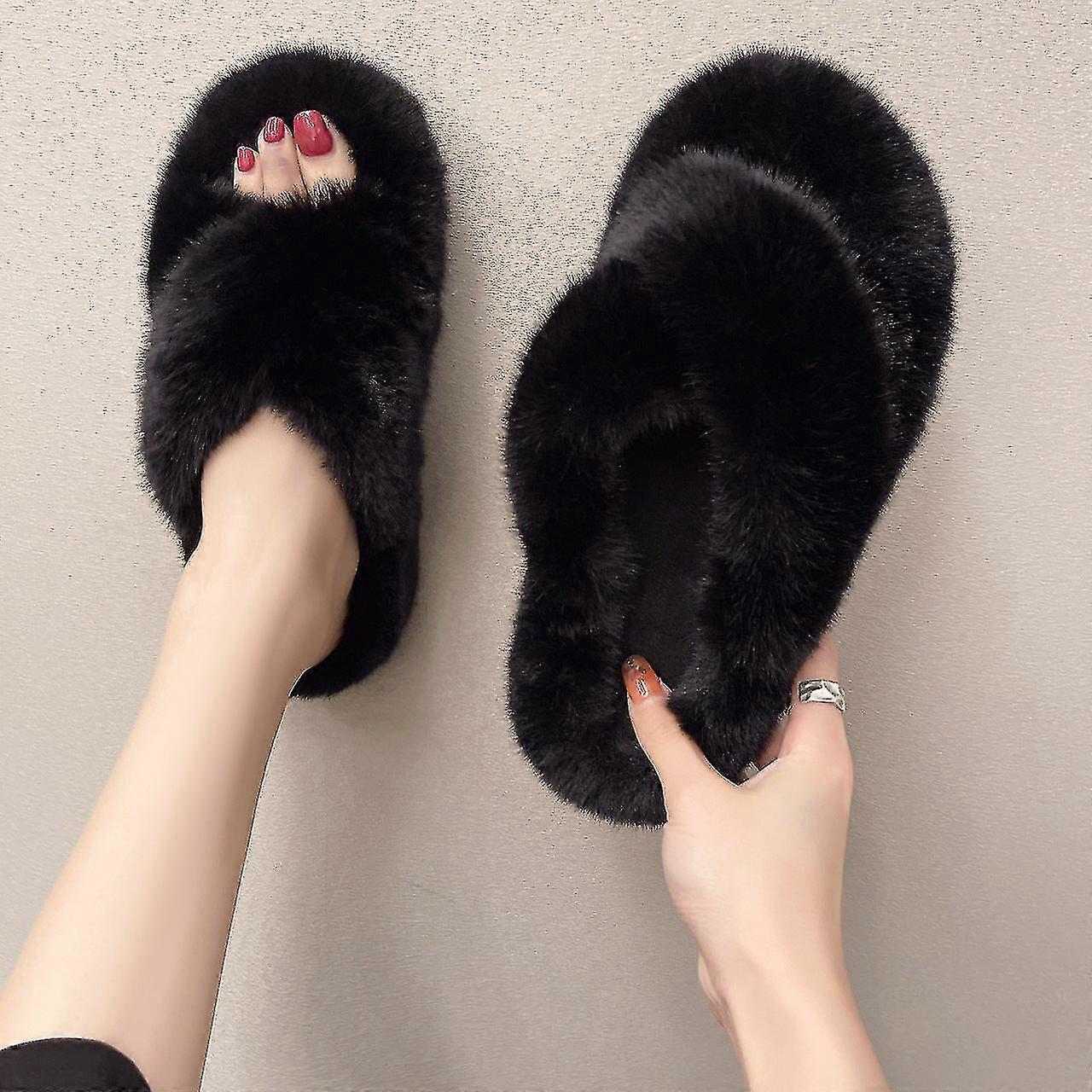 Breey Fluffy Slippers Women's 2023 Autumn And Winter Korean Style Lazybones' Outdoor Cross Platform Open Toe Slippers Zj