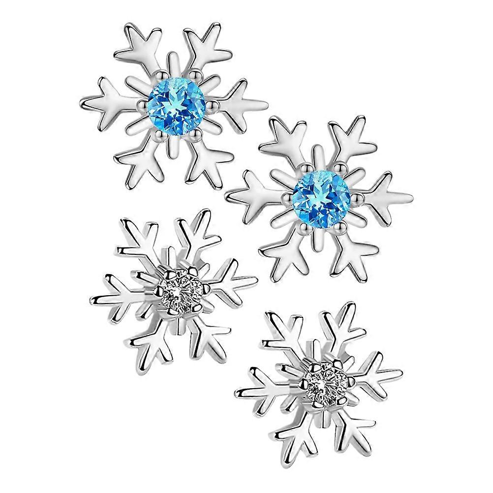 Snowflake Christmas Earrings Rhinestone Studs for Festive Occasions 2Pairs