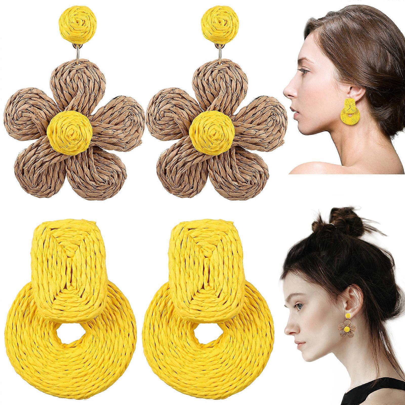 Boho Jewelry Raffia Earrings Bohemian Style Daily Shopping Travel Party Wear Assorted Color Round Shape Comfortable to Wear 2 Pair
