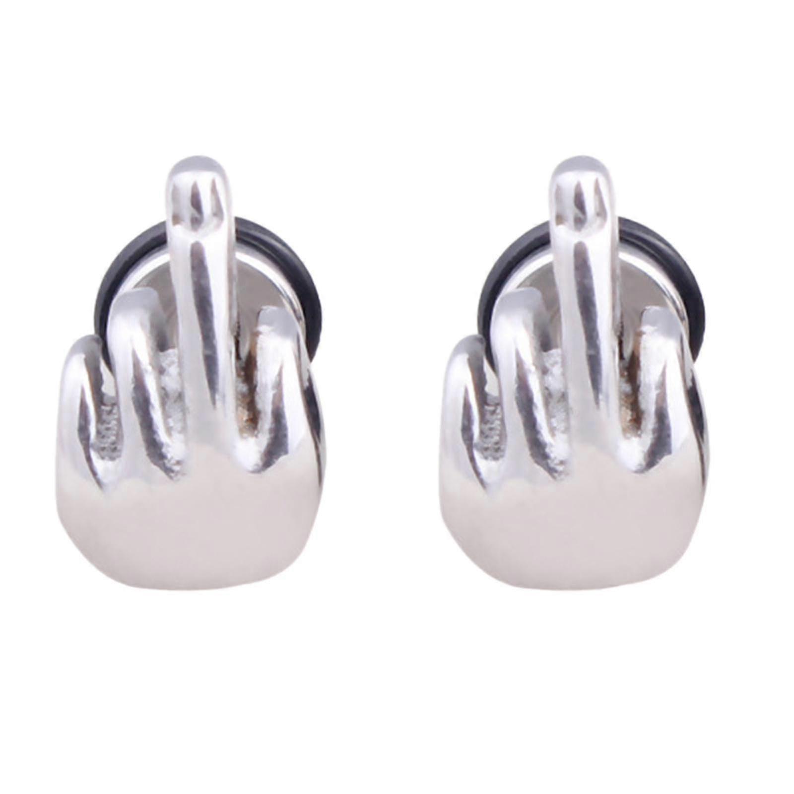 Fashionable Punk Jewelry Earrings with Flat Back for Men and Women Middle Finger Studs Pair