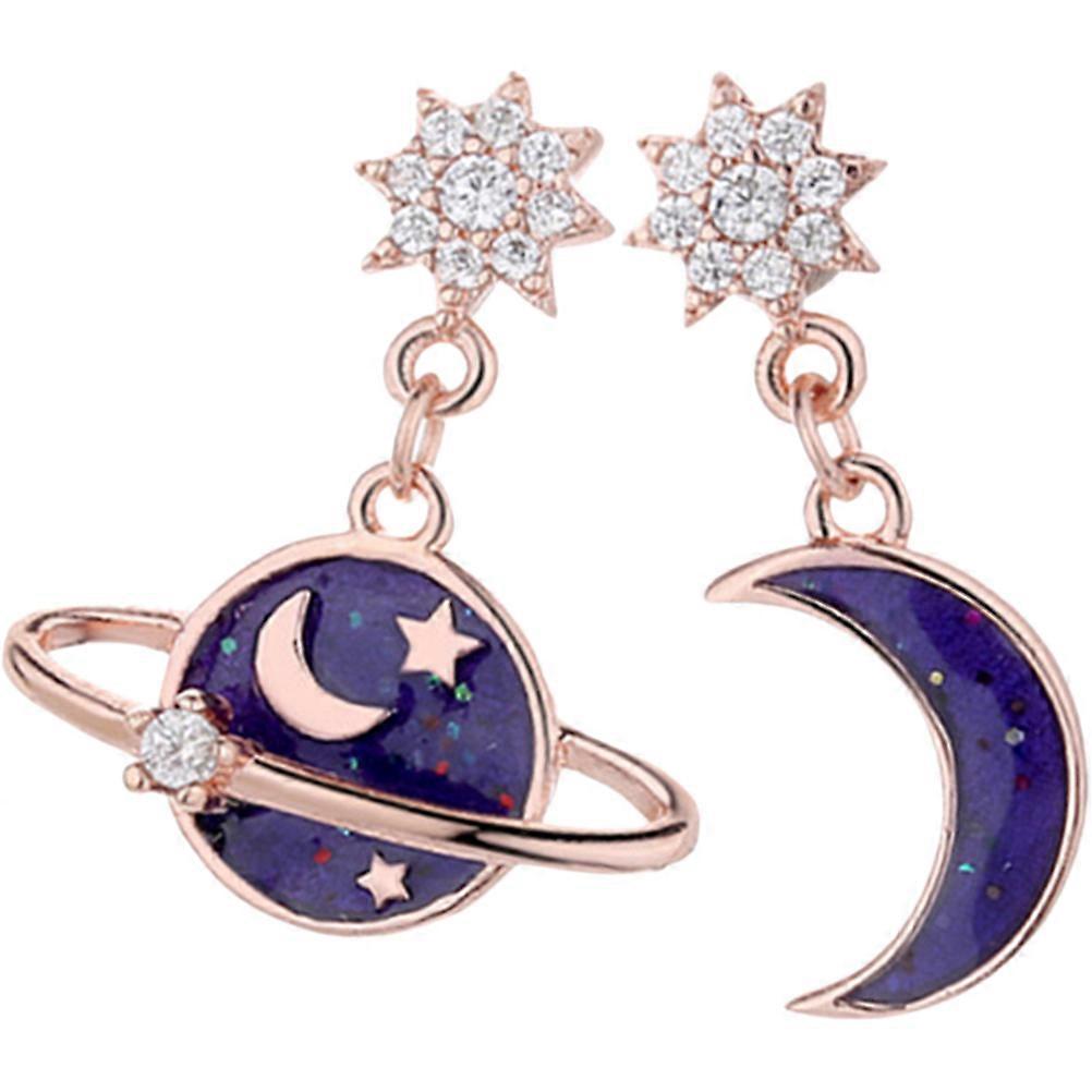 Elegant Moon Star Drop Earrings Pendant Jewelry 2 Pairs Asymmetrical Design For Women Ideal For Gift Giving