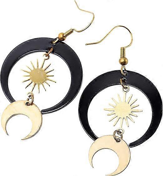Gothic Boho Sun and Moon Earrings, Crescent Moon Star Pendant, Celestial Earring
