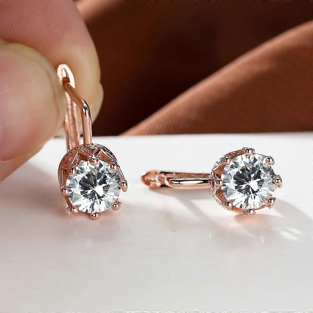 Rose Gold Color Round Cut Pink Red Blue Rainbow Birthstone Drop Dangle Earrings Eight Claw Stud Hook Earrings Jewelry