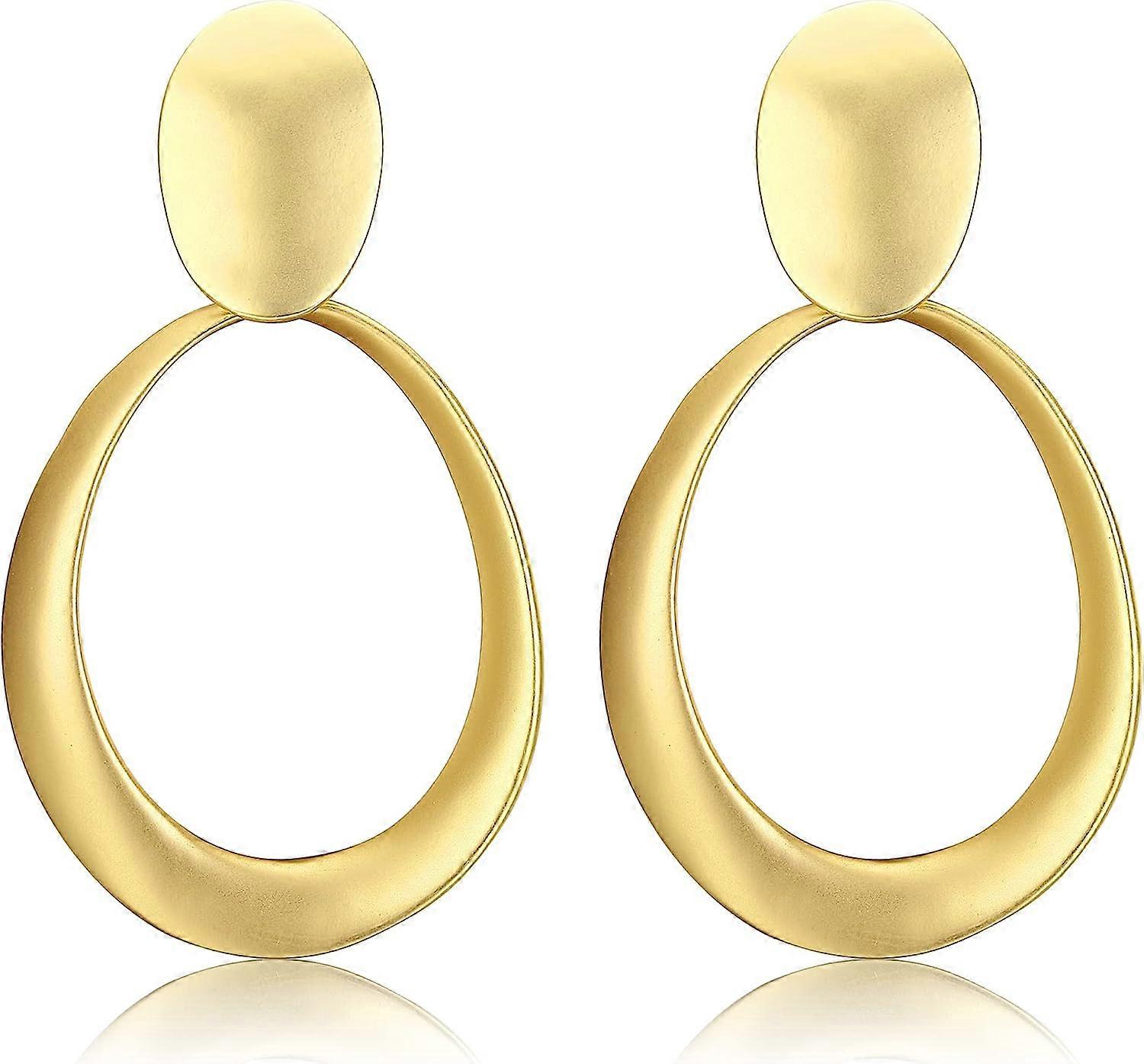 Women's gold hanging earrings Large round with round clips geometric earrings matt pendant goldstyle 1
