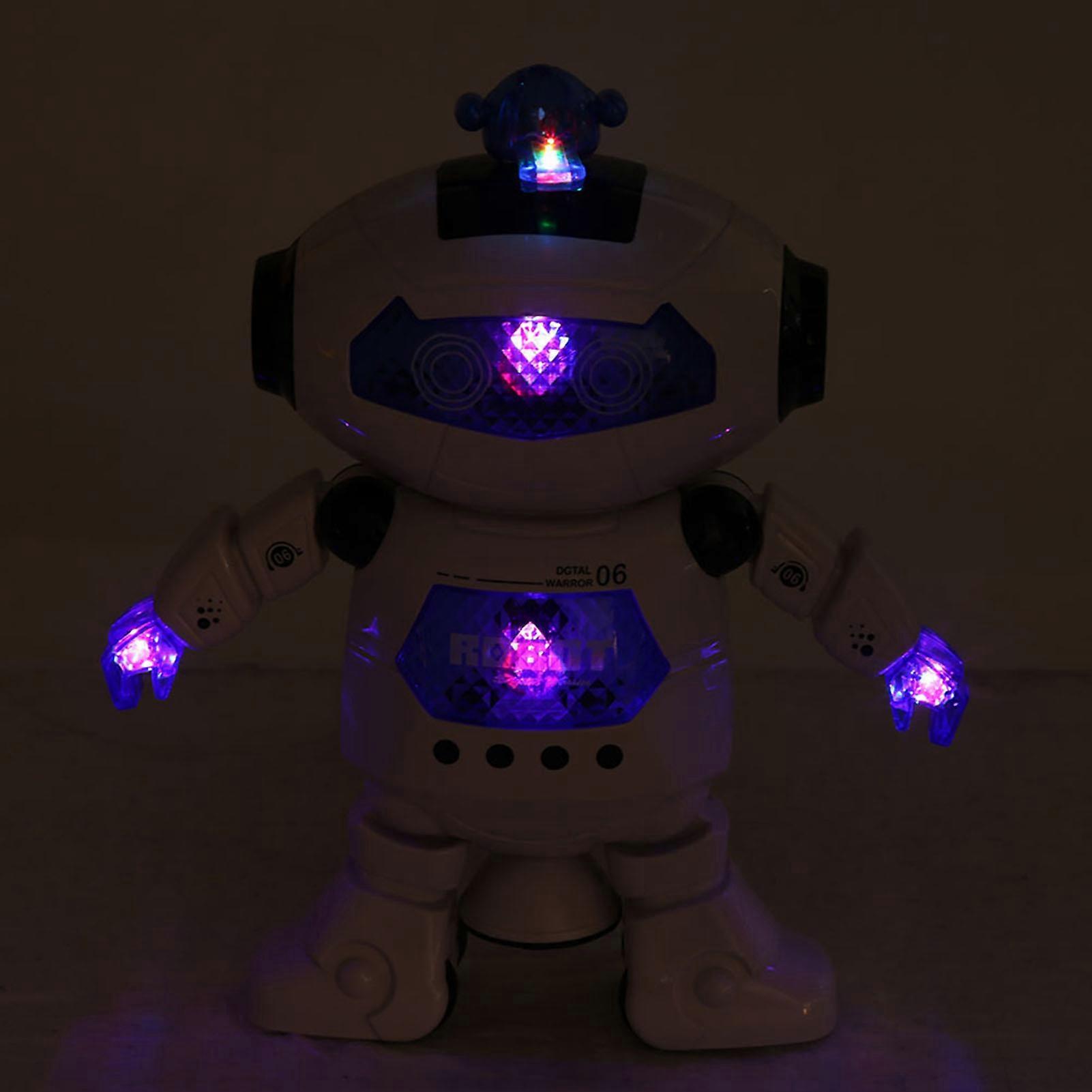 360° Rotatable Lighting Dancing Humanoid Robot Toy Kid Children Playful Gift Features: This robot toy is very interesting , thus can serve as a perfect gift for kids. It shaped like a little human with flexible joints, can perform tricks to please kids.  It mainly can do singing, dancing, lighting and 360° rotating on a base. Made from good material, can be played by kids for a long time if well cared. If you are troubled by what to buy for kids, this would be a great gift idea.  Specification: Condition: Item Type: Robot Toy Materials: Plastic + Metal Color: As Shown in the Picture Suitable Age: Beyond 4 Years Old Battery Type: 3 * 1.5V AA Battery (NOT included)  Item Height: Approx. 21.5cm / 8.46inch Package Weight: 295g Package Included: 1 x Robot Toy Note: 1. This is a simple type of robot toy, can only do some simple performances, unlike those intelligent ones, so do expect too much of it. 2. The item color displayed in the pictures may be slightly different from the real object, due to different monitors or other factors. And please allow 1-3cm error due to manual measurement. Thanks for your understanding. 3.Please note that the new type and old type of this product will be sent randomly, and make sure you will not mind before ordering.