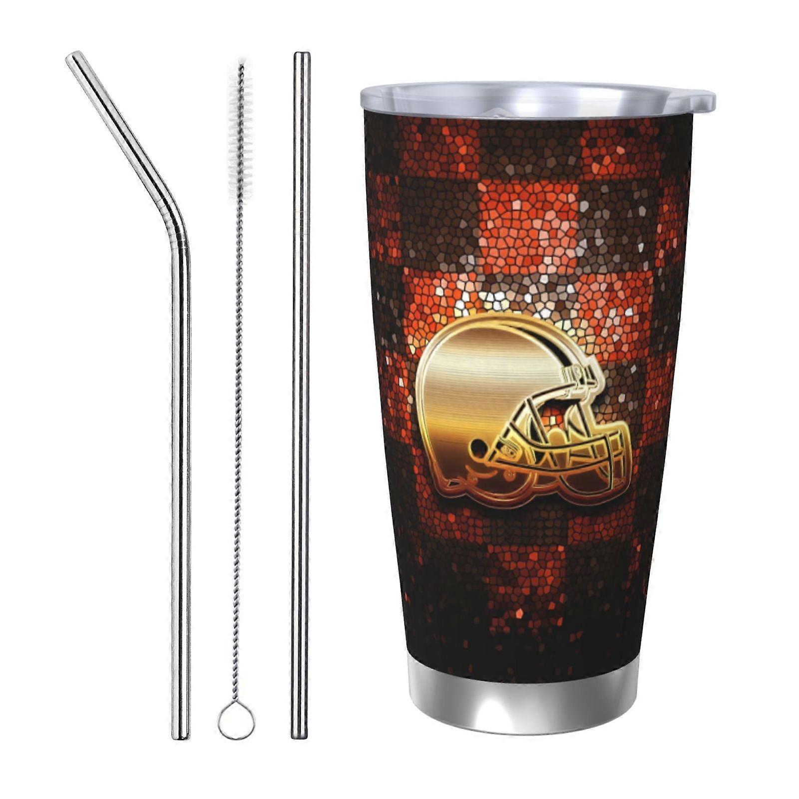 Browns Football Team 20oz Stainless Steel Thermos Cup with Lid & Straw - Compatible with Car Cup Holders, Hot & Cold Drinks