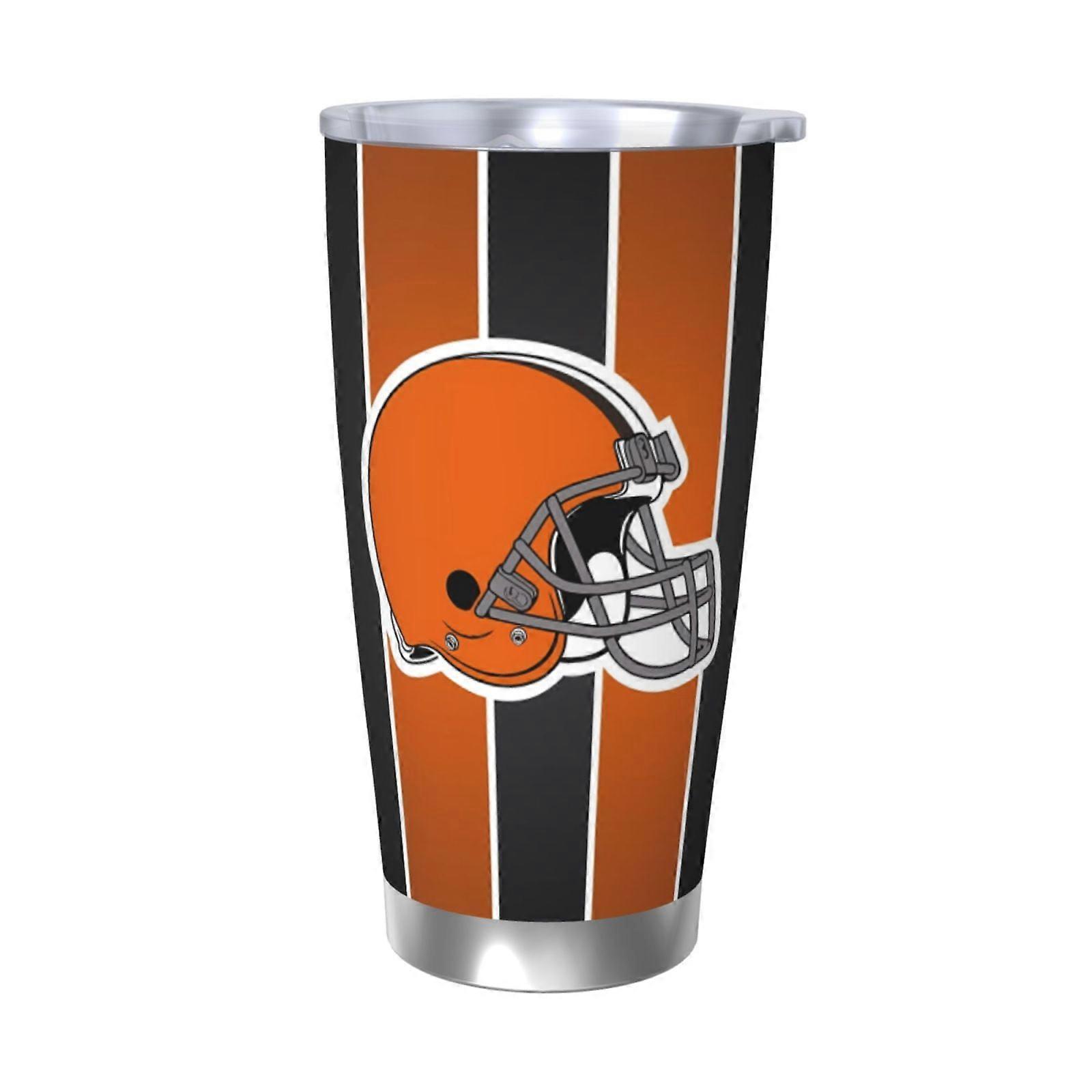 Browns Football Team 20oz Stainless Steel Thermos Cup with Lid & Straw - Compatible with Car Cup Holders, Hot & Cold Drinks