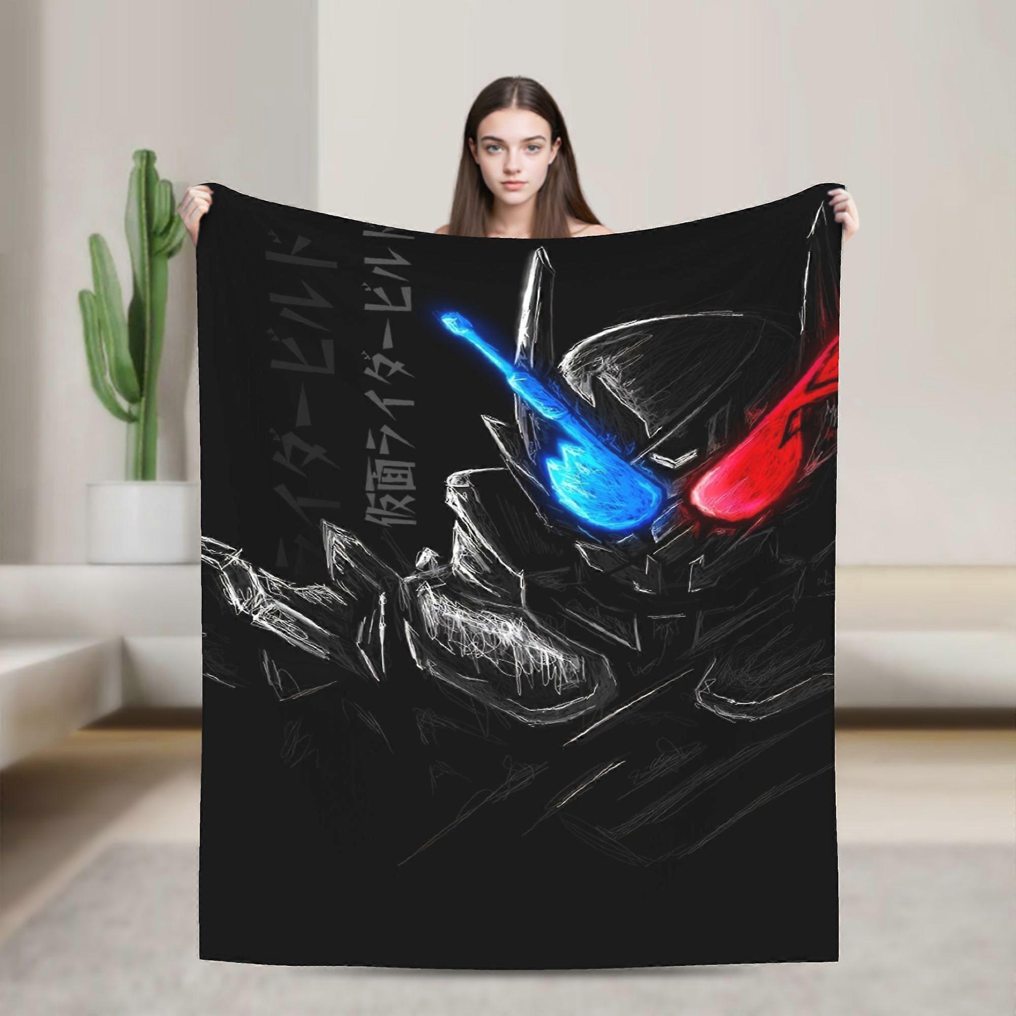 Build Anime Poster Blanket - Plush Flannel Flock with Build D Model Character Design ( Text & Iconic Black/White Armor) -KJAZX268