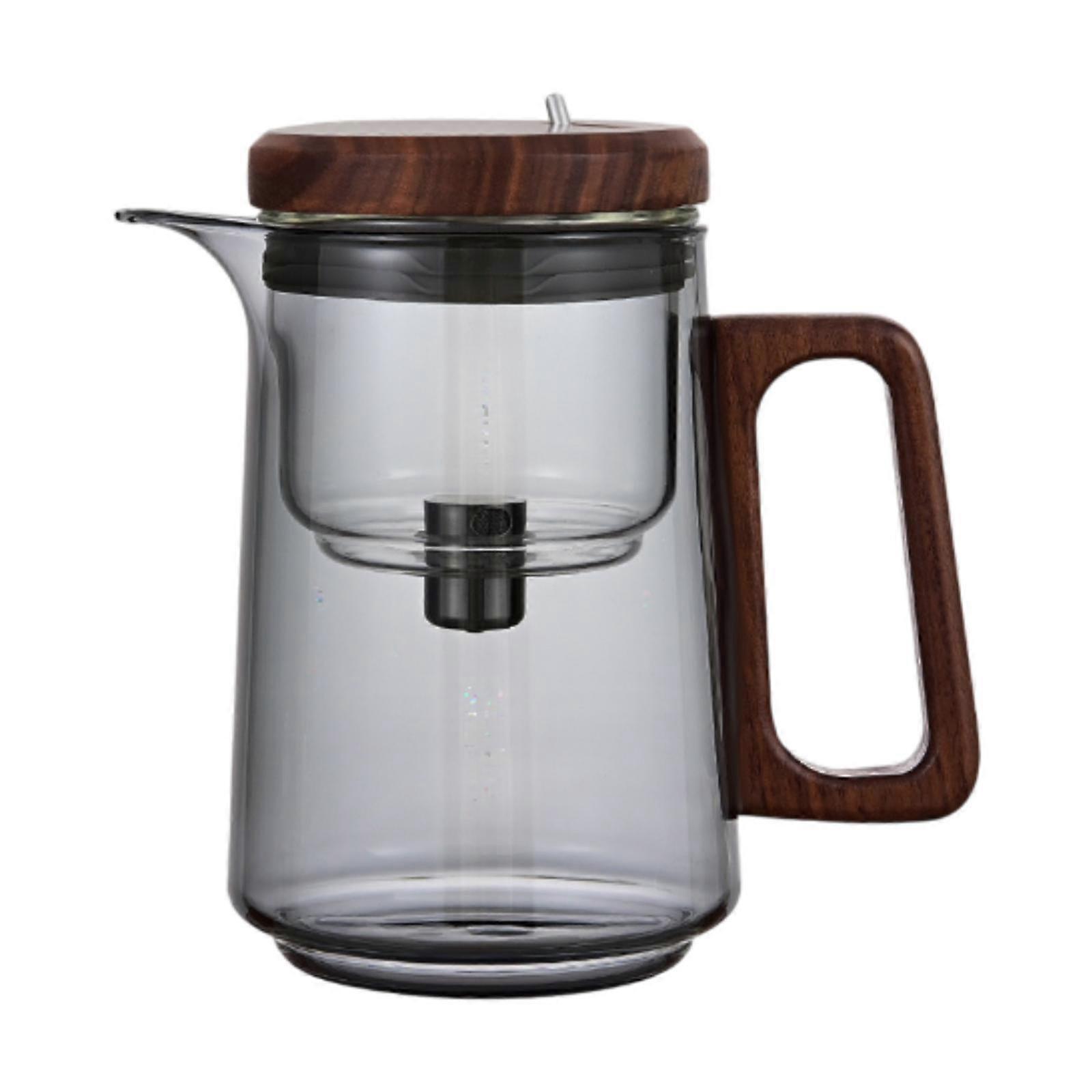 Glass Teapot 28oz/800ml Heat Resistant Wooden Lid Tea Kettle for Loose Leaf Tea