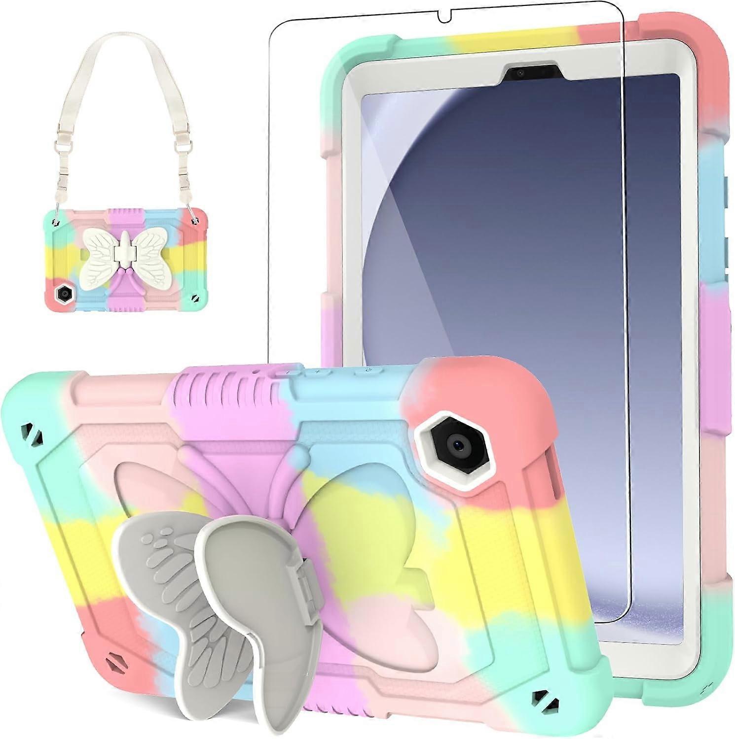 Bundle of Case for compatible with Samsung Galaxy Tab A9 8.7 Inch 2023 with Tempered Gl Screen Protector,ged Butterfly Kids Tab