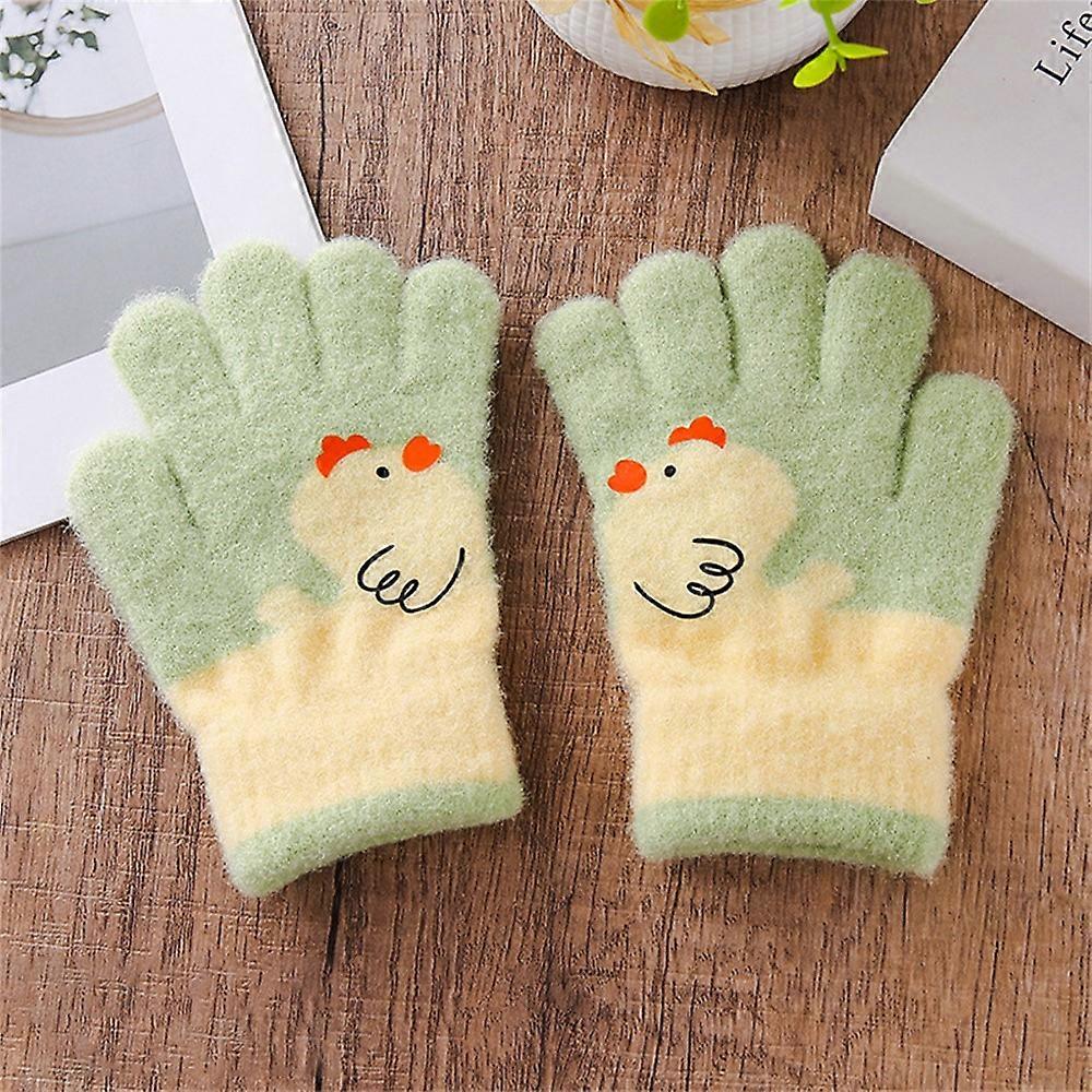 C5573 1 Pair Cartoon Chicken Pattern Winter Full Finger Gloves for Kids Fleece Lined Warm Mittens