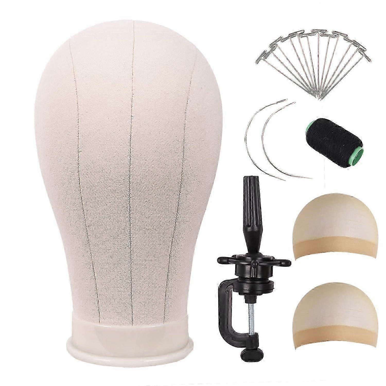 23 Inch Canvas Block Head Wig Head With Stand for Making Wig Head Display Styling (Beige)