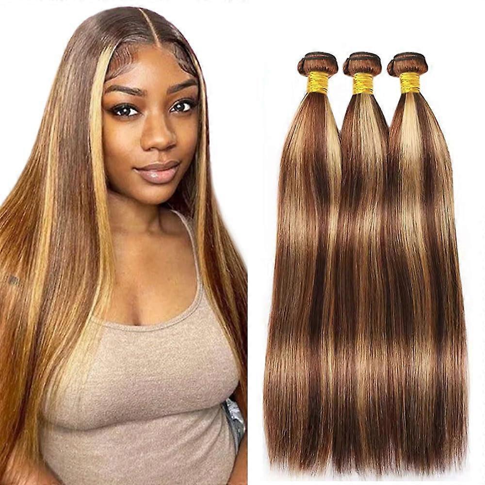 100% Unprocessed Brazilian Remy Human Hair Straight Bundles with Ombre Highlight P4/27 Product highlights Material: 100 percent unprocessed Brazilian human hair for a natural appearance and realistic movement. Texture: Straight bundles with ombre highlight brown to blonde color, P4/27. Type: Brazilian Remy human hair with cuticles aligned for consistent texture. Construction: Double machined weft for stronger seams, reduced shedding, and minimal tangling. Quality: No tangle, no shedding, no odor. Length: Available from 8 inch to 30 inch. Measure after stretching hair to straight for accurate length. Weight: 3 bundles per package, 100 g per bundle, 300 g total. Suitable occasions: Daily wear, weddings, dates, concerts, theme parties, Halloween, and special events. Why choose these bundles Natural look and feel: 100 percent unprocessed Remy hair keeps cuticles intact for a lifelike shine and movement that blends seamlessly with your own hair. Durable and low maintenance: Double machined wefts strengthen the bundle base and help prevent excess shedding and tangles over time. Ready to style: Straight texture with ombre highlights offers an instant, salonready appearance while allowing heat styling and restyling with care. Versatile length and volume options: Choose lengths from 8 inch to 30 inch and use three bundles for a full head or add a fourth bundle for extra length and fullness. Styling and care tips Heat styling: Can be straightened and restyled. Avoid temperatures above 125 F to prevent damage. Washing: Wash regularly with a mild shampoo in cool water. Swish gently, rinse thoroughly. Detangling: Detangle gently before washing. Do not rub or twist hair. Use fingers or a wide tooth comb. Maintenance: Keep hair clean of excess grease and buildup to reduce tangling. Clean and trim ends as needed. Expect a small amount of normal shedding when handling. How many bundles to 3 bundles typically provide a full head. 4 bundles are recommended for noticeably fuller or longer styles. Use scenarios Everyday wear: Add natural fullness and length for a polished daily look. Special events: Create elegant styles for weddings or formal occasions. Performances and parties: Use bold ombre highlights for stage, concert, or themed event looks. Included in package Three straight human hair bundles, ombre highlight brown blonde color P4/27, 100 g per bundle, lengths from 8 inch to 30 inch as selected.