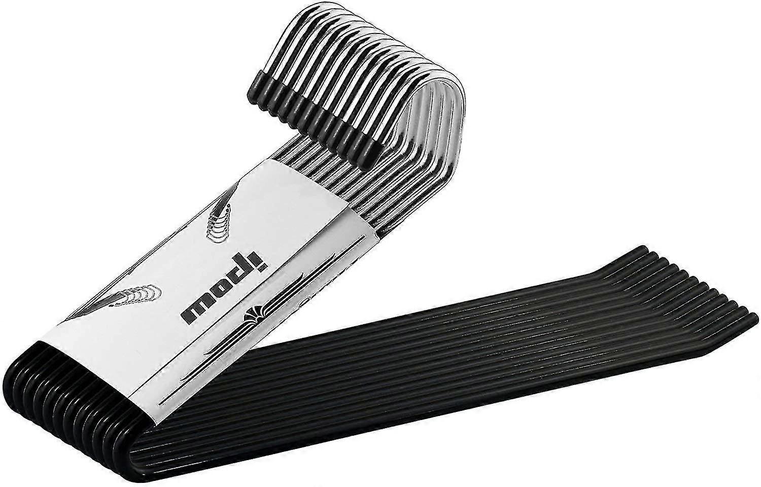Heavy Duty Metal Slacks/Trousers Hangers Open Ended Pants Easy Slide Organizers, Chrome And Black Friction, Non-Slip Arms, Set Of 12