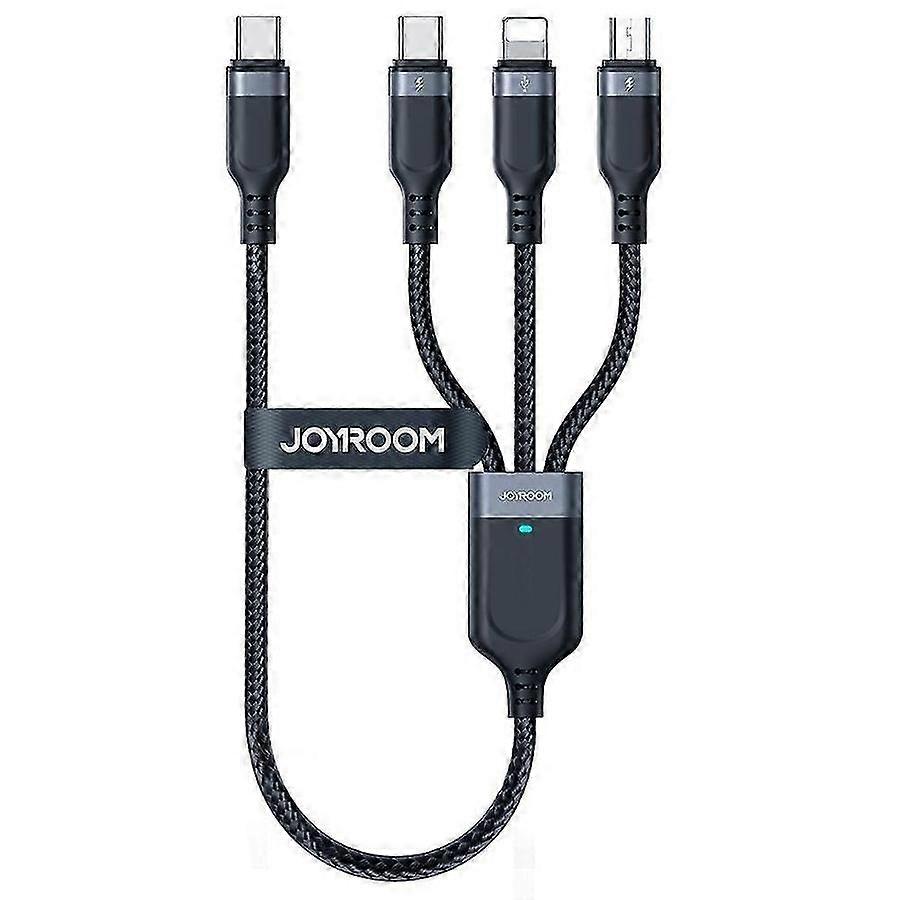 •Multi-Device Compatibility: One cable compatible with multiple devices, allowing simultaneous charging for up to three devices<br> •High-Speed Charging: Supports up to 3.5A total output when charging three devices simultaneously, with a single port providing up to 2.4A for fast charging<br> •Intelligent Voltage Regulation: Automatically adjusts voltage and current to ensure safe and efficient charging without overheating<br> •Charging Indicator Light: Features an indicator light that turns on when connected to power, making it easy to see the charging status at a glance<br> •Durable Nylon Braiding: Constructed with precision nylon braiding that is pull-resistant and wear-resistant, providing a soft and flexible feel<br> •Reinforced SR Protection: Extended and flexible SR protection around the core wire ensures durability and prevents breakage even with violent bending<br> •Lightning Data Transfer: Supports data transfer with Lightning connection and is compatible with CarPlay for seamless in-car connectivity<br> Specification:<br> •Model: S-A18<br> •Current: iP 2.4A, Micro 2A, Type-C 2A<br> •Length: 0.3m<br> •Transmission Speed: 480Mbps<br> •Net Weight: 24g<br> •Function: charging/data transmission<br> •Material: aluminum alloy+braided nylon<br> •Applicable model: phone with iP/Type-C/Micro interface<br> Package included:<br> •1 x Charging Data Cable<br> •1 x English and Chinese Manual<br> •Other items not included