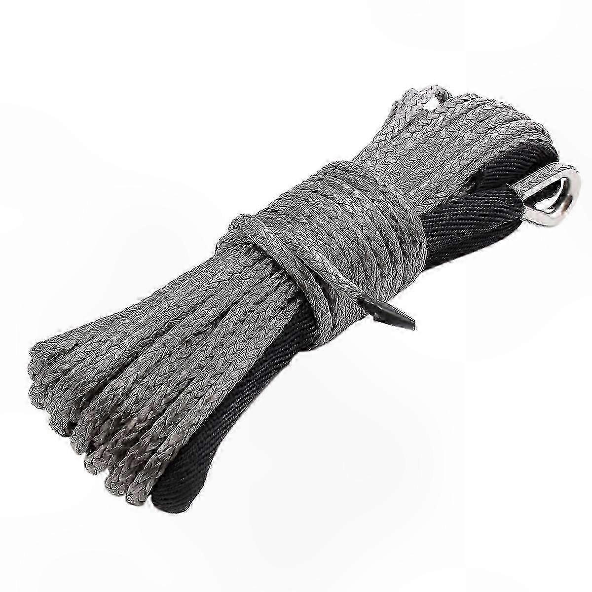 Very light, floats in water. Easy to handle and splice. Minimal stretch and non-rotating. Good resistance to UV and chemicals. To prevent overheating, slippage, or rough surfaces. Upgrade your winch with stronger synthetic winch rope than traditional steel cables. Length: 15m (50ft) Thickness: 5mm (3/16 inch) Breaking Strength: Average 7700 lbs Suitable for: Universal fit for most cars, SUVs, and ATVs Color: Black + Gray Material: Synthetic fiber Package Contents: 1 x Synthetic Winch Rope Only the above package content is included; other products are not included. Note: Light reflection and different displays may cause the color of the item in the picture to be slightly different from the real thing. Measurement allowance is +/- 1-3 cm.