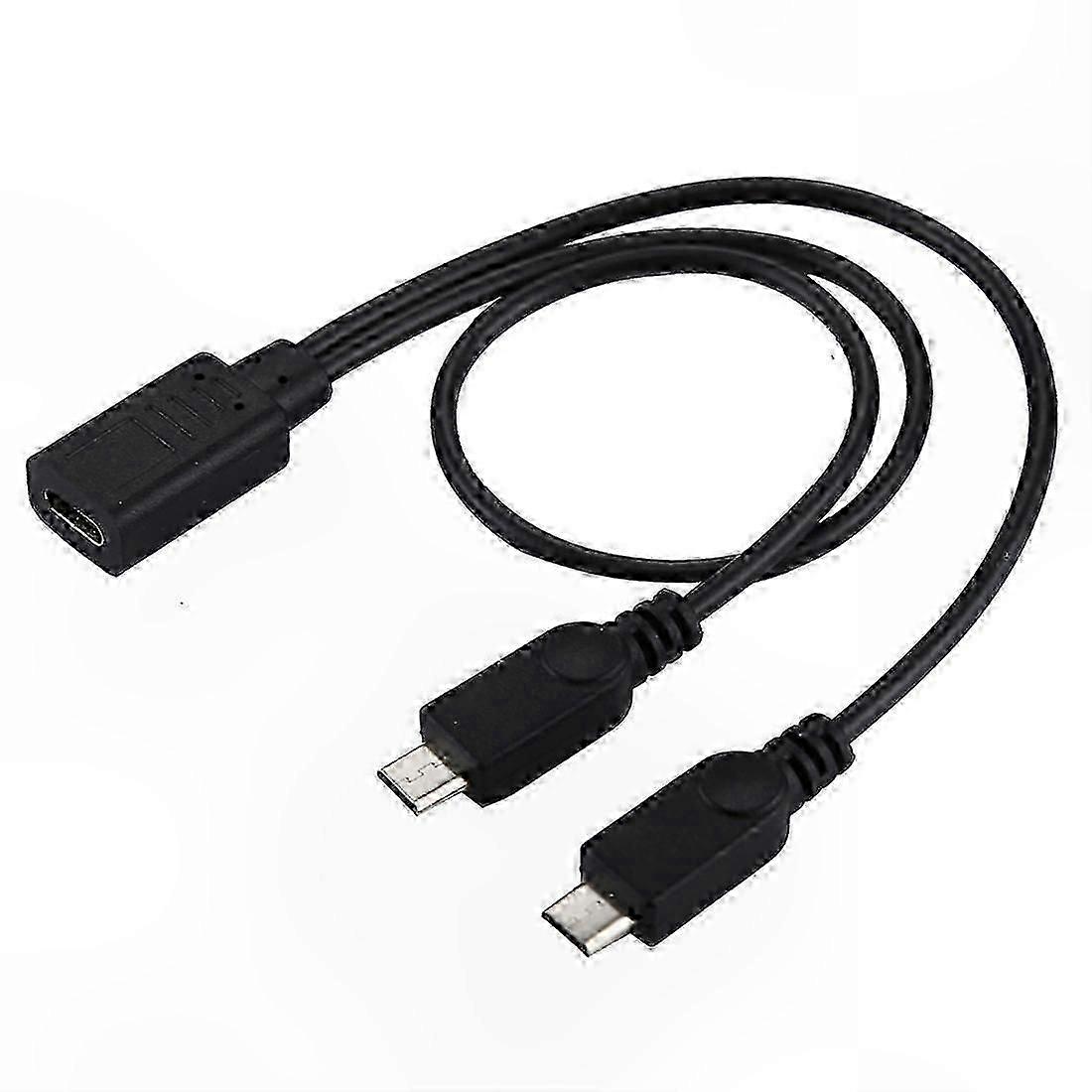 Dual Micro USB Male to USB-C Female Y Splitter Cable, Approx. 30cm Length