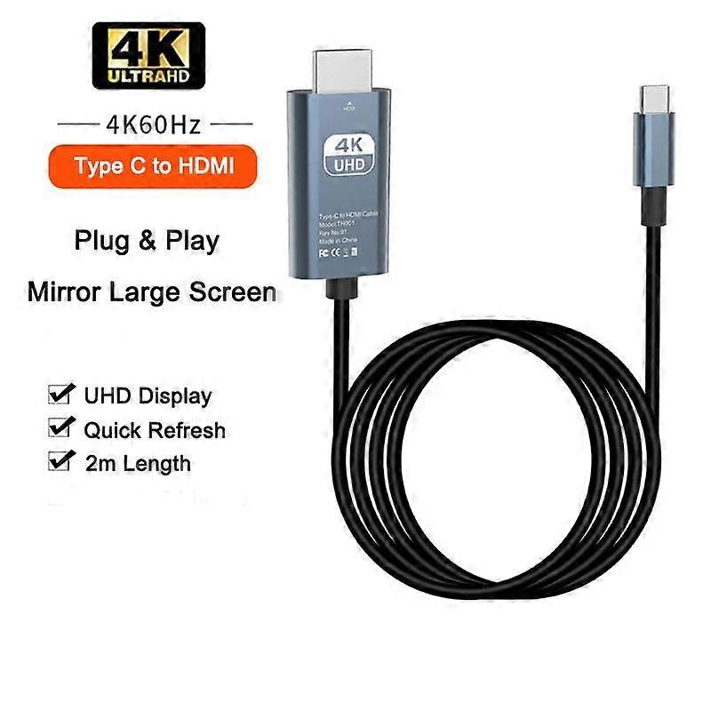 4K@60Hz/30HZ Type C To HDMI Cable USB C to HDMI-compatible Cable 2m TV Display Adapter for MacBook Laptop Plug and Play