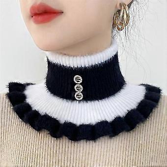 Knitted Stripe Lapel Collar Warmth Neck Cover for Women Thickened Imitation Mink Velvet Fake Collar Neck Scarf