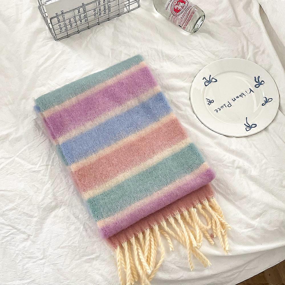 Stylish Kids Rainbow Scarf Comfortable Neckerchief with Fringes Cold Weather