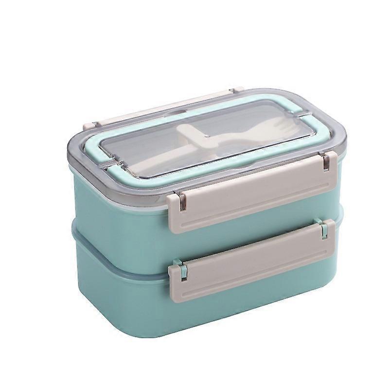 Children's Double Layer Lunch Box With Stainless Steel Spoon and Fork(green)