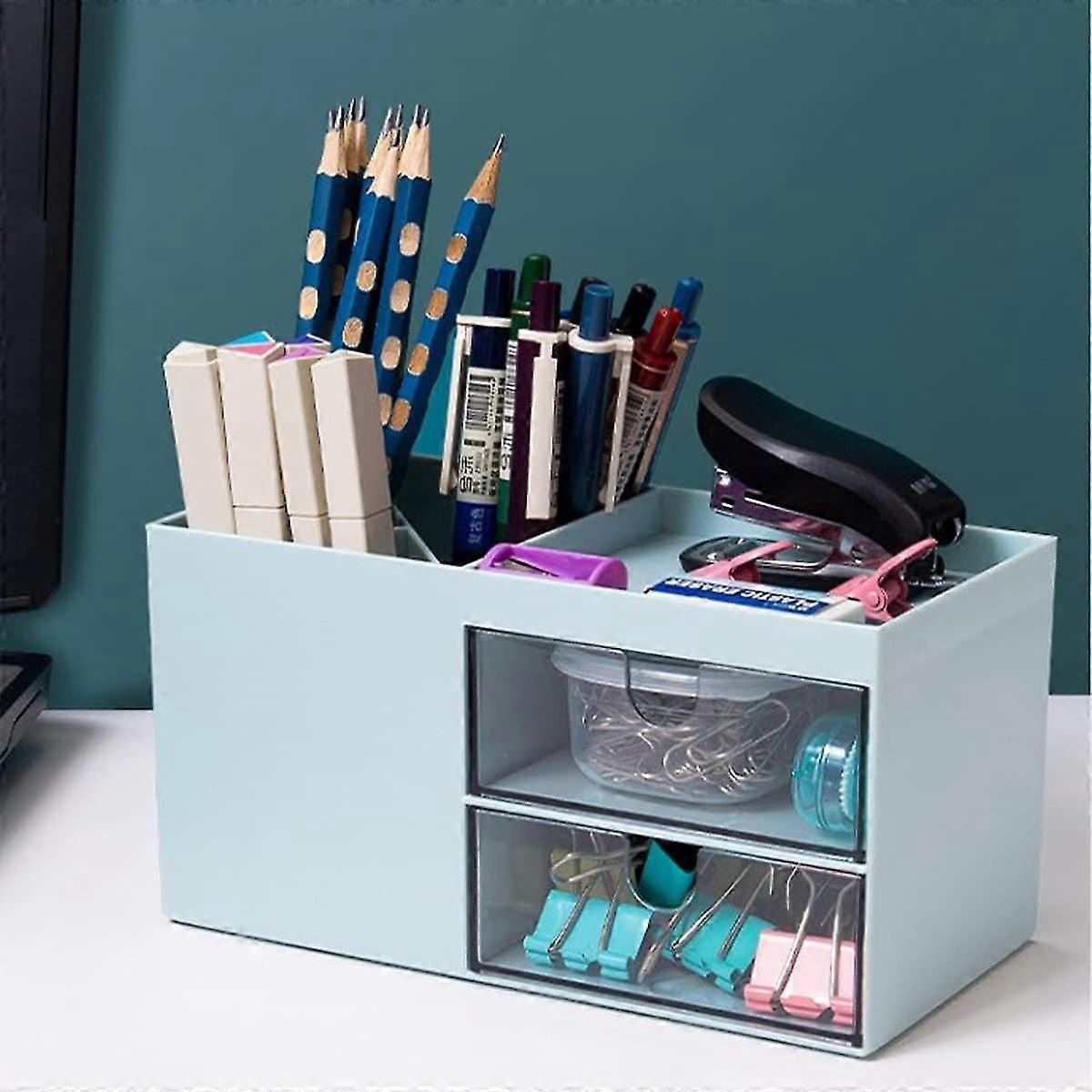 Desk Storage Box With 2 Drawers, Kawaii Pen Holder, School Supplies Storage Box, Desk Storage Storage, Light And Simple Design Set, Suitable For Makeu