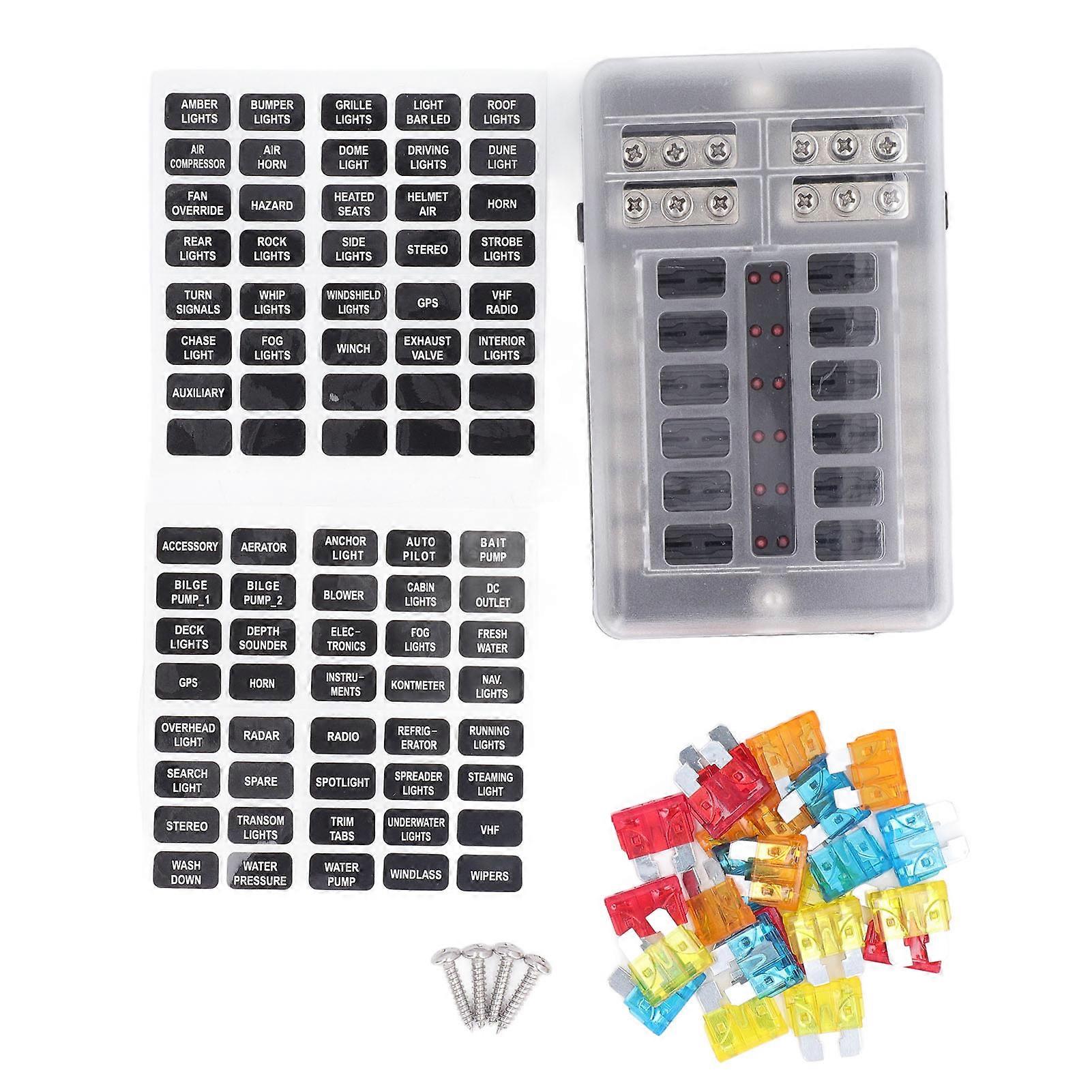 12 Way Fuse Box with LED Indicator DC12?32V Waterproof Circuit Blade Fuse Holder for 12V 24V Car and Boat