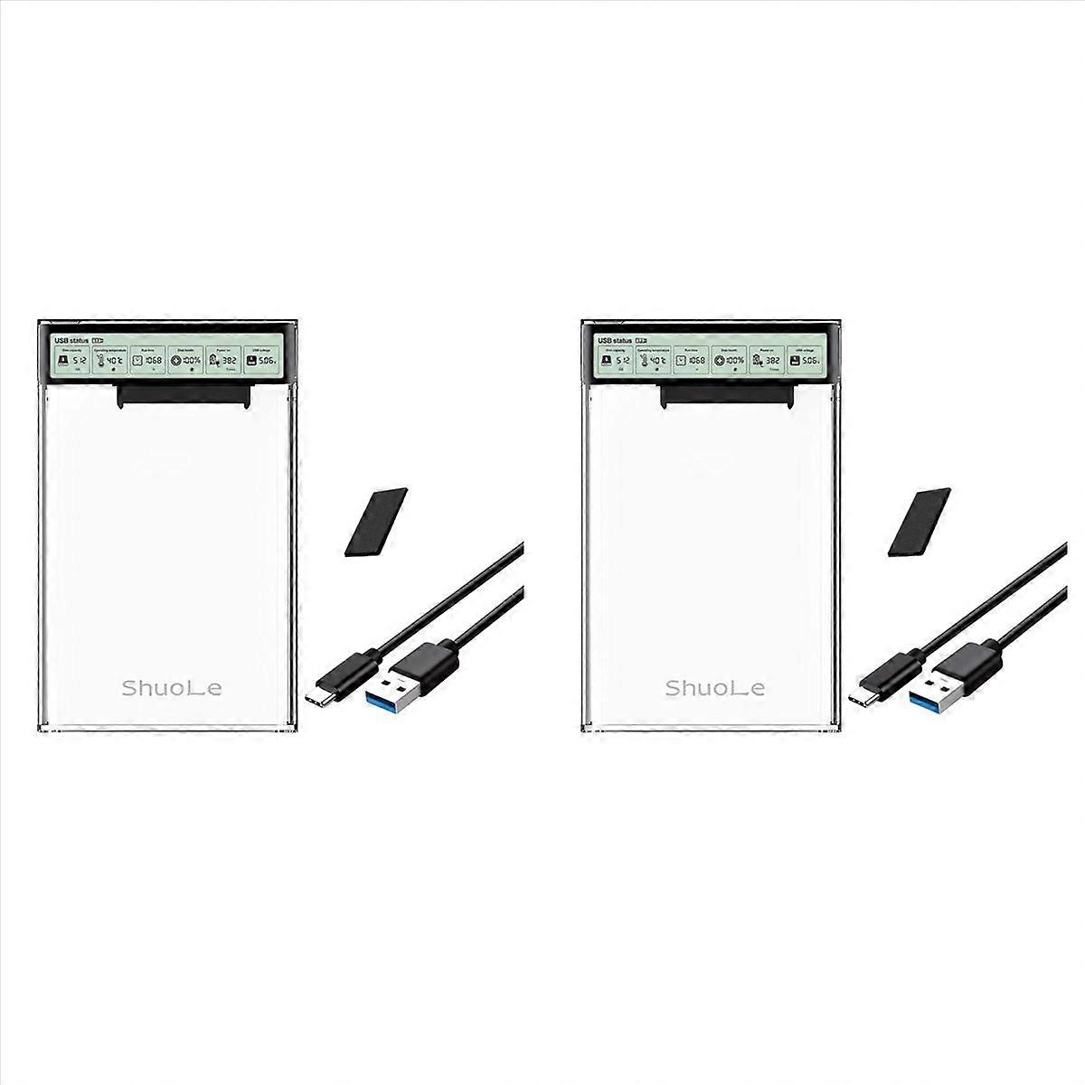Come with HD display to monitor your hard drive usage in real time.Display content includes:Total hard disk capacity, hard disk temperature, hard disk health, hard disk operation time, hard disk power-on times, USB port voltage.The datas on the display allow you to monitor the usage of the hard disk more directly,When your hard drive health is below , you need to pay attention to backup data in time. USB 3.2 Enclosure can easily connect a 2.5inch SSD/HDD with your USB-A equipped device to expand storage, upgrade system, back up files, retrieve and recover data, and transfer data. It is awesome for booting up old spare hard disks. Super Speed 5Gbps & UASP: Hard drive enclosure with USB3.0 high speed transfer supports 5Gbps transfer rate and UASP+TRIM dual acceleration protocol, 900% faster than traditional USB 2.0, transfer HD , music and data in 3-4 seconds. Super Easy to Use: Tool free installation. Plug & Play, No driver needed for this SATA enclosure. Just push out the cover, plug in , close the cover and go. Hot-Swappable. The blue LED indicator to let you know the working status of this hard disk enclosure easily. It fits 2.5inch SATA III / II / I HDD & SSD up to 4TB, compatible with your USB-A equipped devices including laptop, tablet, desktop etc, Making sure that your phone support OTG function. Idely Compatible with PCs & Laptops: compatible with for ,for OS , for Linux, for Chrome OS etc. Colour:Transparent Material:ABS+PC Package Contents: 2 x hard disk box 2 x data cable 2 x shockproof pad(Colors are random, no specified colors are accepted) Only the above package content, other products are not included. Note: Light reflection and different displays may cause the color of the item in the picture a little different from the real thing. The measurement allowed error is +/- 1-3cm.