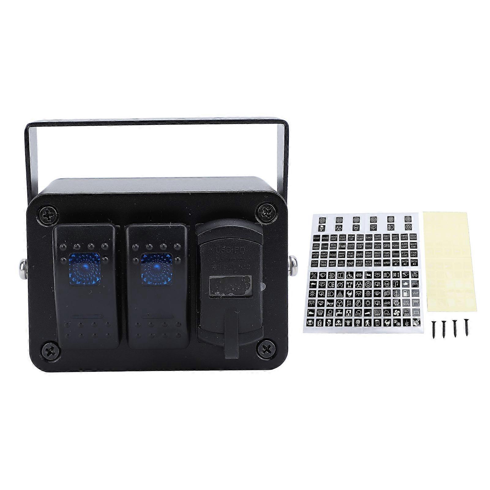Gang Rocker Switch Box with Voltmeter, PD USB Type C QC3.0 Port, Waterproof, DC 12-24V, for Car, Truck, Boat, RV, Trailer, UTV, ATV, Blue Light
