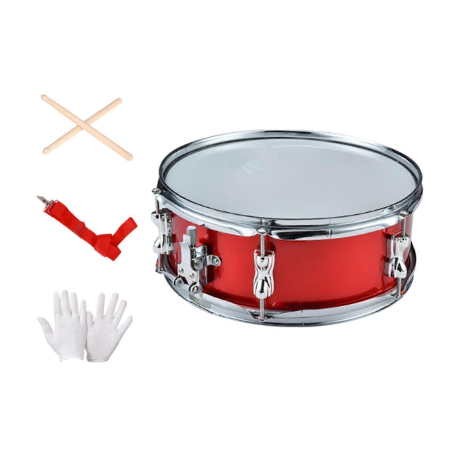 14 Inch Red Two Tone Marching Snare Drum with Gloves and Belt, Durable Steel Shell, Clear Sound