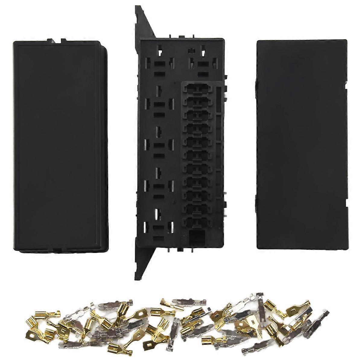 Description: Made from high quality plastic. Waterproof connector, can be use both relay and fuse. High characteristic and stable performanc. Easy installation and easy to use. Suitable for motor-home, automotive and motorsport applications. Name:Fuse Relay Box Material:plastic Fit: Universal for cars color: Black Note: Without relay and fuse Package Contents: 1 x 11 way fuse relay box 52 x terminal (left side x 30 right side x 22) Only the above package content, other products are not included. Note: Light and different displays may cause the color of the item in the picture a little different from the real thing. The measurement allowed error is +/- 1-3cm.