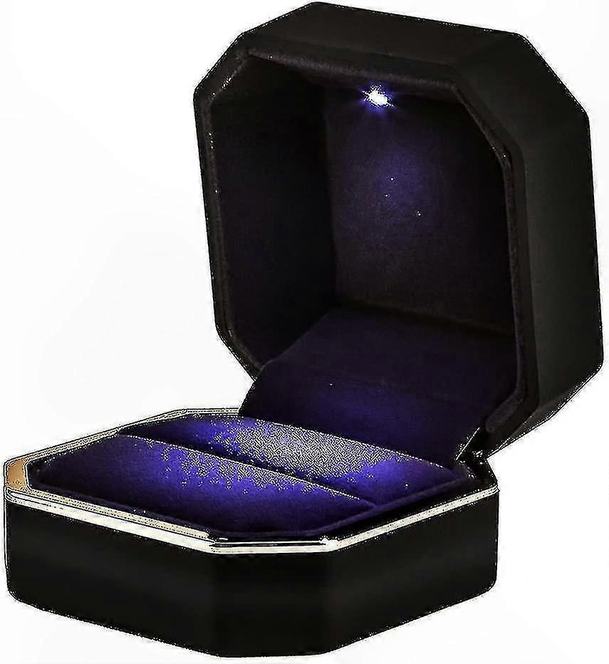 Square Velvet Ring Box with LED Light for Engagement and Wedding Gifts