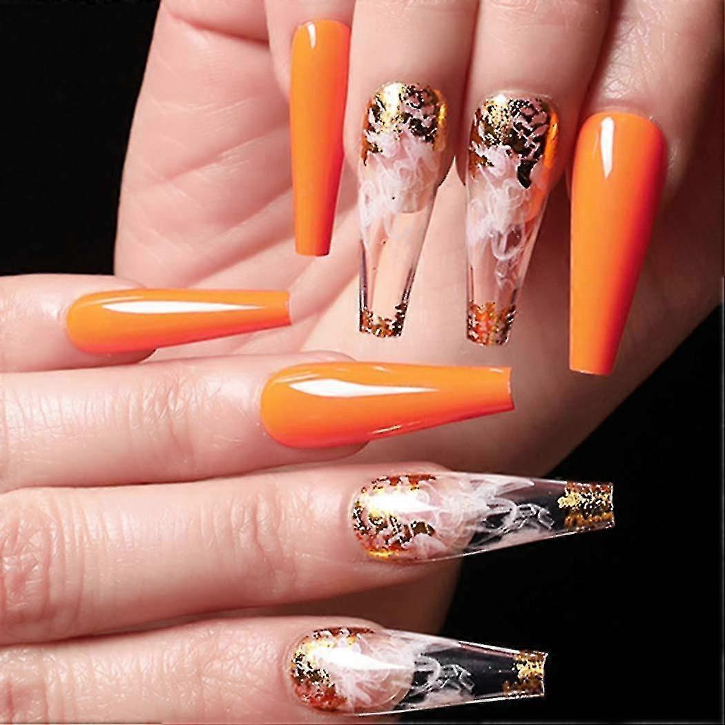 Glossy Pattern Coffin Extra Long Press On Nails With Degign Ballerina Acrylic Super Long False Nails 24pcs