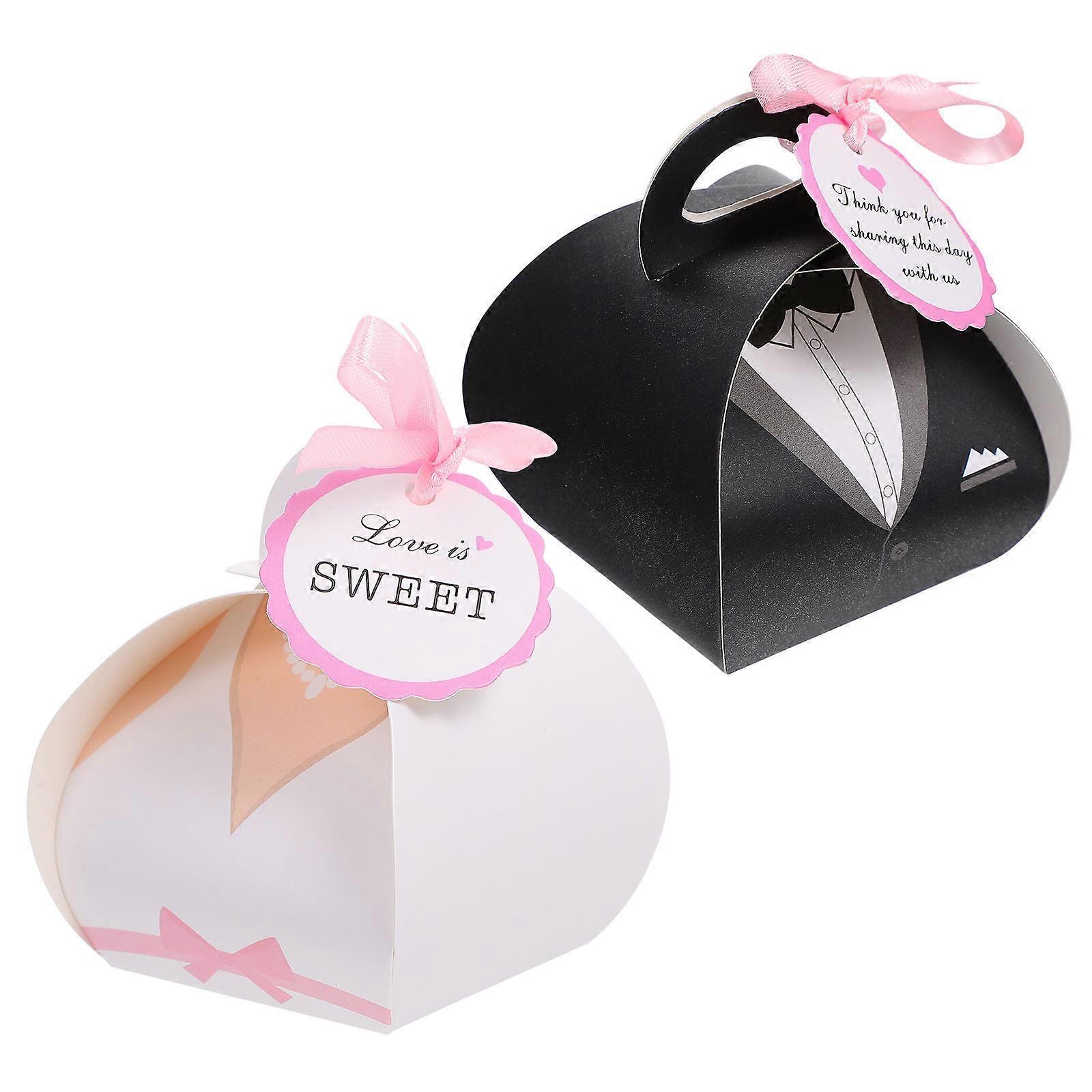 This is a wedding candy box, made of safe and gentle paper materials, which can help you store and decorate your candy and gifts. This is an excellent packaging box and will be your excellent candy box choice. Features - Color: Black, white. - Material: Paper. - Size: About 5.00X5.00X8.00cm/1.97X1.97X3.14inch. - It is made of paper material, safe and gentle, you can rest assured to use it for packaging and storage. - The unique design makes it more and beautiful, and it will be a great choice for your wedding party. - It has a suitable volume and can easily store and decorate enough candies. - Creative and beautiful candy packaging boxes can help create a festive and joyful atmosphere. - The candy storage box can be widely used in packaging for parties, birthdays, weddings, etc. Package list: candy boxes with ribbons and