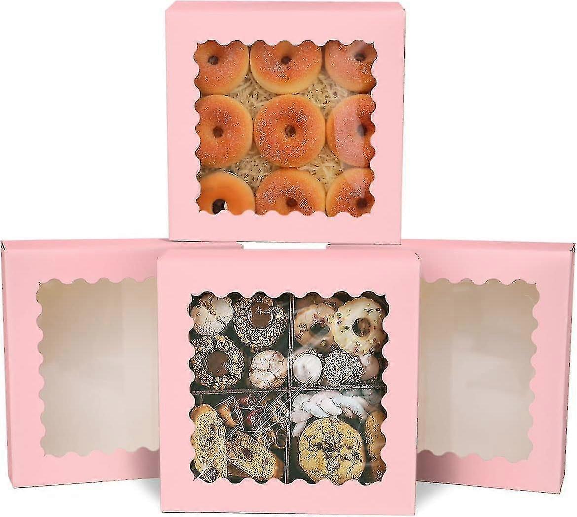 Pink Pie Boxes With Window 10x10x2.5 Inch 30packs Cookie Donut Bakery Box